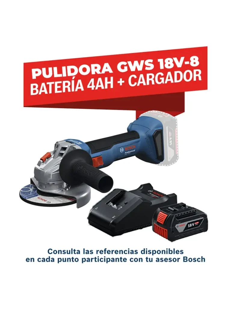 PULIDORA INALÁMBRICA GWS 18V-8 + CARGADOR 4AH + CARGADOR BOSCH
