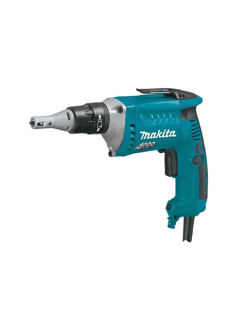 El destornillador Makita FS4200 permite atornillar con precisión en tableros de drywall, gracias a su control ajustable de profundidad. Su diseño ergonómico y mango de goma aseguran un agarre cómodo y seguro, mientras que su velocidad de hasta 4.000 min⁻¹ con control variable desde el interruptor ofrece un funcionamiento rápido y eficiente. Además, cuenta con luz LED para iluminar el área de trabajo y mejorar la visibilidad.
