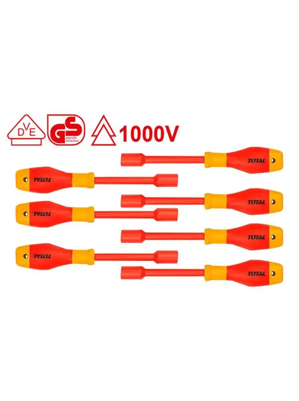 El juego de 7 destornilladores aislados Total Tools (THKISD0701) es ideal para trabajos eléctricos, con puntas planas magnéticas fabricadas en acero 50BV30. Cada destornillador es aislado para 1000V, asegurando máxima protección. Su mango redondo ofrece comodidad, y la calidad del set de 7 piezas garantiza durabilidad y versatilidad en el trabajo. Perfecto para técnicos y electricistas que buscan herramientas seguras y confiables.