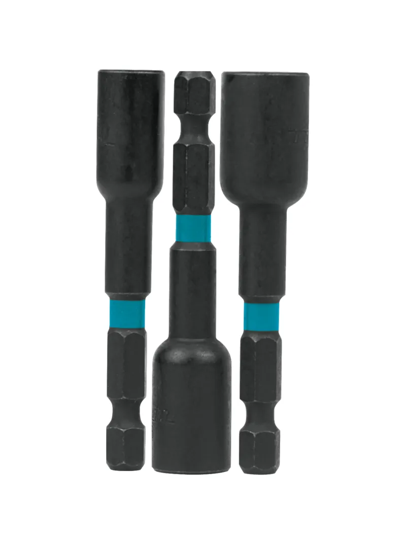 El juego de puntas de copa magnéticas Makita A-97689 Impact X™ está diseñado para ofrecer máxima durabilidad, precisión y rendimiento en aplicaciones de impacto profesional. Fabricado en acero S2 de alta resistencia con tratamiento térmico y recubrimiento de fosfato de manganeso, garantiza una excelente transmisión de torque, resistencia al desgaste y protección contra la corrosión incluso bajo condiciones exigentes.Este set incluye tres puntas de copa magnéticas con medidas de 1/4", 5/16" y 3/8", cada una con una longitud total de 2-9/16" (65 mm) y vástago hexagonal de 1/4", lo que asegura compatibilidad con atornilladores y taladros de impacto. Su diseño magnético permite una retención firme y estable de tornillos y tuercas, mientras que la geometría lobular reduce el redondeo de las caras y mejora el contacto durante el ajuste.Gracias a su construcción reforzada, el Makita A-97689 ofrece un desempeño confiable, cortes precisos y un agarre seguro en cada aplicación. Es ideal para instaladores, técnicos y profesionales de la construcción que buscan resistencia, eficiencia y larga vida útil en sus herramientas de impacto.