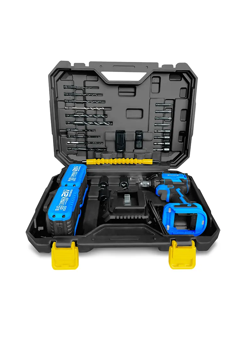 La Llave de Impacto Inalámbrica 21V 1/2" + 2 Baterías ELITE XIW2135K cuenta con motor brushless que entrega hasta 350 Nm de torque, ideal para montaje y desmontaje de tuercas y pernos. Incorpora cuadrante de 1/2″ compatible con dados de impacto y dos niveles de velocidad, ofreciendo potencia y control para trabajos en talleres automotrices, construcción y mantenimiento.