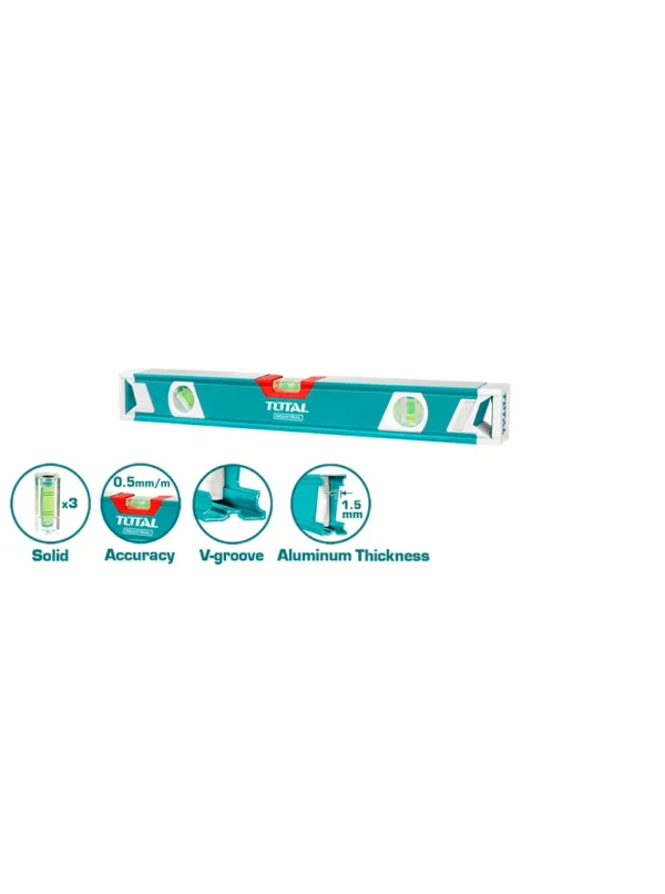 El Nivel de Aluminio Total Tools (TMT2406) de 40 cm es fabricado en materiales de alta calidad, combinando aluminio y ABS para garantizar durabilidad e indestructibilidad. Con precisión de 0.5 mm/m, es ideal para trabajos de alineación y nivelación precisos.