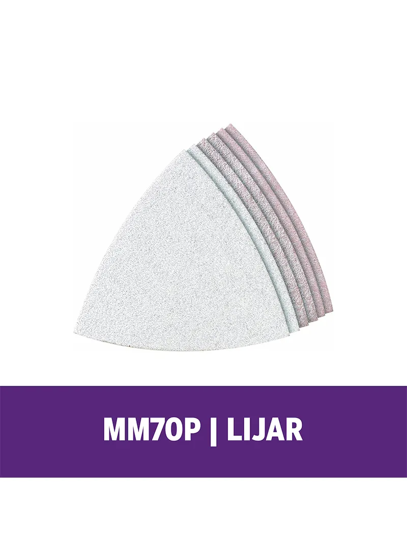 El Papel para Lijar Pintura para Dremel Multi-Max con 6 piezas (M70P) incluye lijas en granos P80, P120 y P240, especialmente diseñadas para trabajar sobre superficies pintadas. Este set permite preparar y terminar la pintura con acabados suaves y profesionales, ideal para proyectos de restauración y repintado.