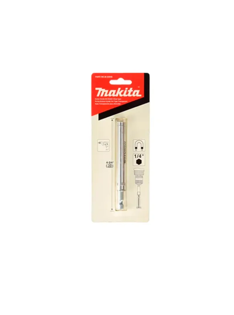 El portapunta extensible Makita B-52940 es ideal para atornillar con precisión en lugares difíciles de alcanzar. Cuenta con una guía transparente que facilita la alineación de los tornillos, asegurando un trabajo más rápido y exacto.