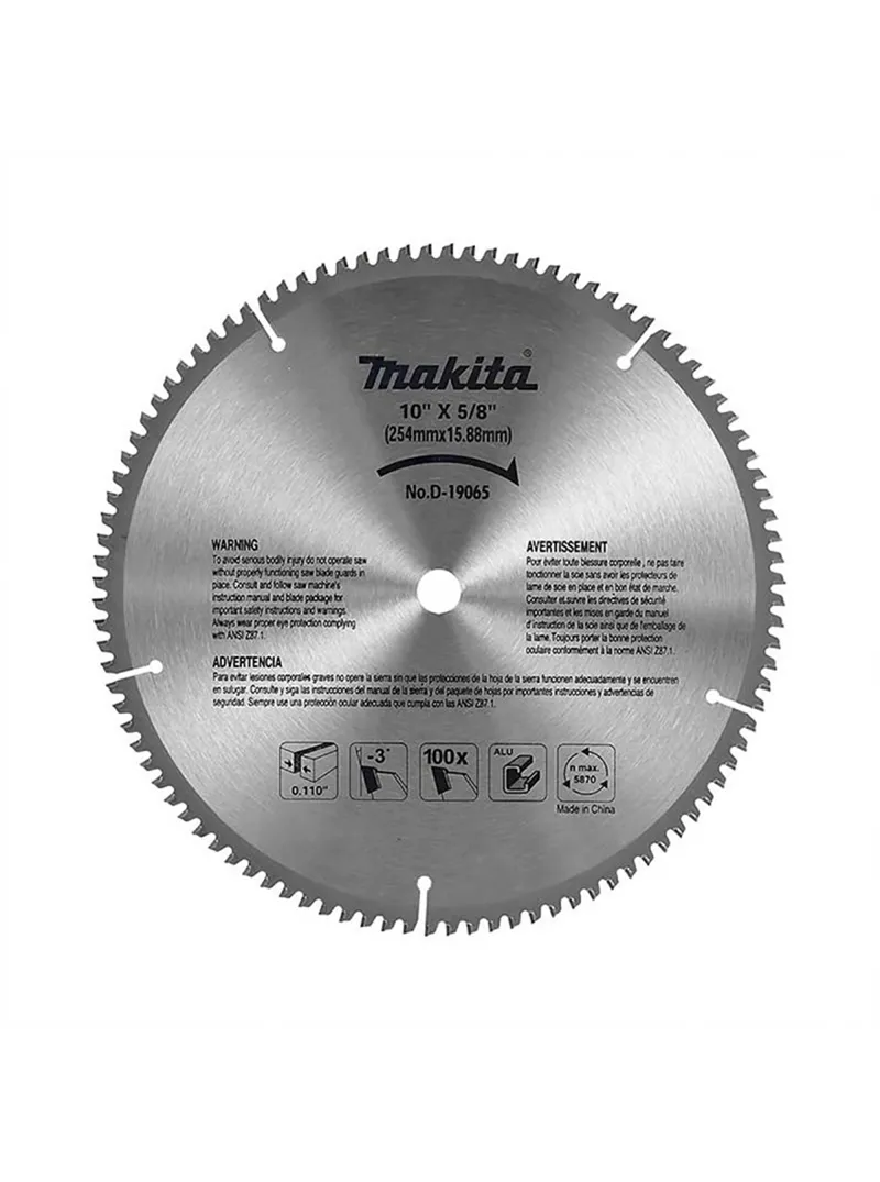 La sierra circular Makita D-19065 de 10" y 100 dientes está diseñada para el corte limpio y preciso de aluminio y otros materiales no ferrosos. Cuenta con dientes de carburo soldados que garantizan mayor durabilidad y un acabado fino, mientras su diseño de corte delgado reduce la carga del motor y minimiza el desperdicio de material. Ideal para trabajos profesionales que requieren alta precisión y excelente calidad de corte.