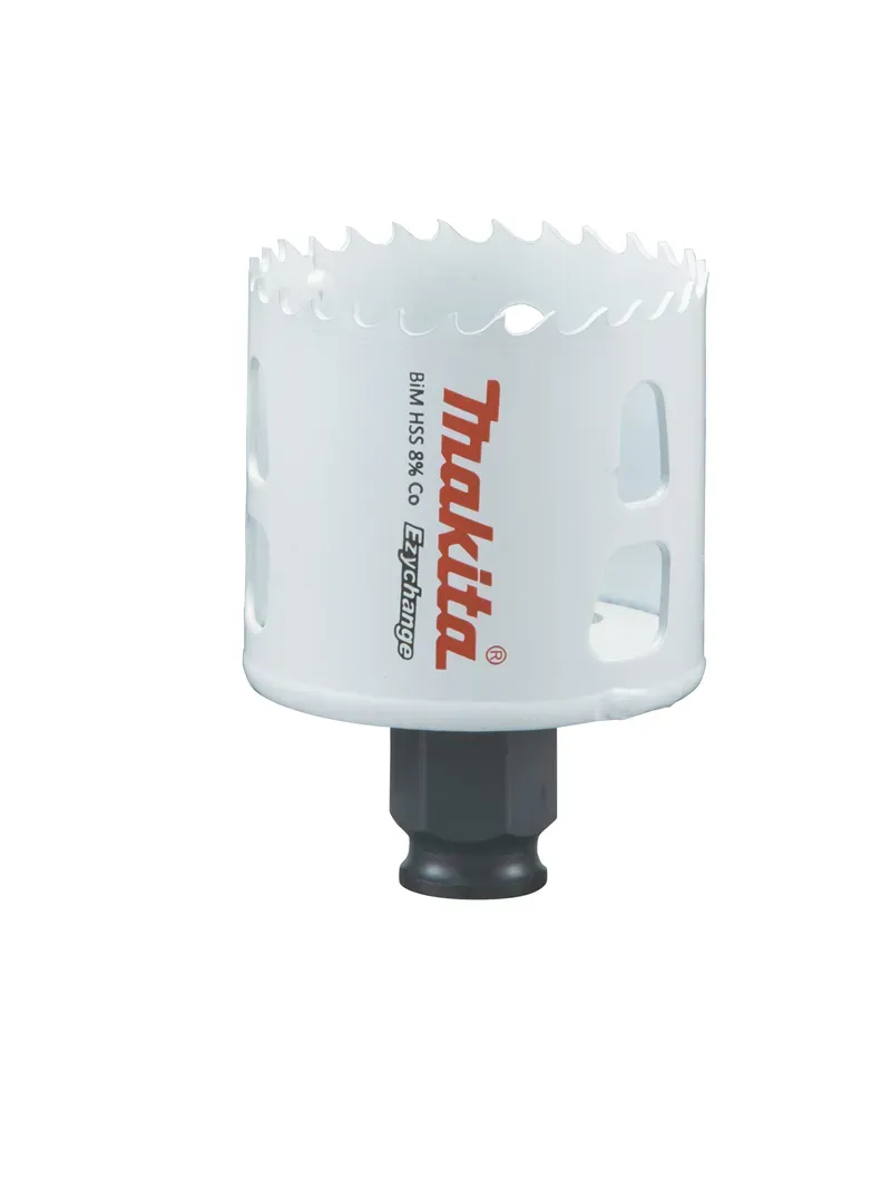 La sierra copa bimetálica HSS Makita E-03844 de 2-1/8" (54 mm) está diseñada para realizar cortes precisos y eficientes en metal, madera y materiales compuestos. Fabricada en acero rápido bimetálico HSS, ofrece alta resistencia al desgaste, durabilidad y rendimiento confiable en aplicaciones exigentes. Cuenta con un diámetro de 2-1/8" (54 mm), grosor de pared de 1,27 mm, profundidad máxima de corte de 38 mm y dientes de paso variable que permiten cortes rápidos y controlados con menor vibración. Es compatible con taladros eléctricos estándar mediante adaptadores de vástago hexagonal o SDS, soporta un rango de velocidad de hasta 4.000 RPM y tiene un peso aproximado de 90 g. Una herramienta práctica y robusta, ideal para talleres, construcción, instalaciones y proyectos de mantenimiento que requieren cortes uniformes y profesionales.