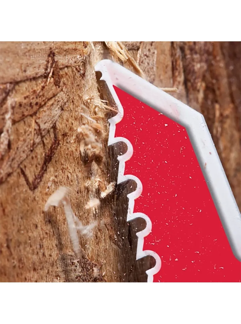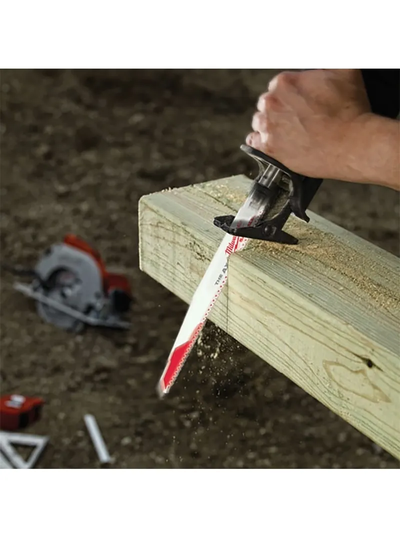 La hoja para sierra sable Milwaukee 48-01-7036 de 9" y 6 dientes está diseñada para cortar madera con máxima eficiencia gracias a su tecnología NAIL GUARD™ y punta FANG TIP™ que asegura penetración rápida desde el primer contacto. Fabricada con dientes bimetálicos Matrix II, ofrece mayor durabilidad y resistencia a fracturas, y cuenta con espiga universal de ½" compatible con todas las sierras SAWZALL® y modelos estándar de la competencia.