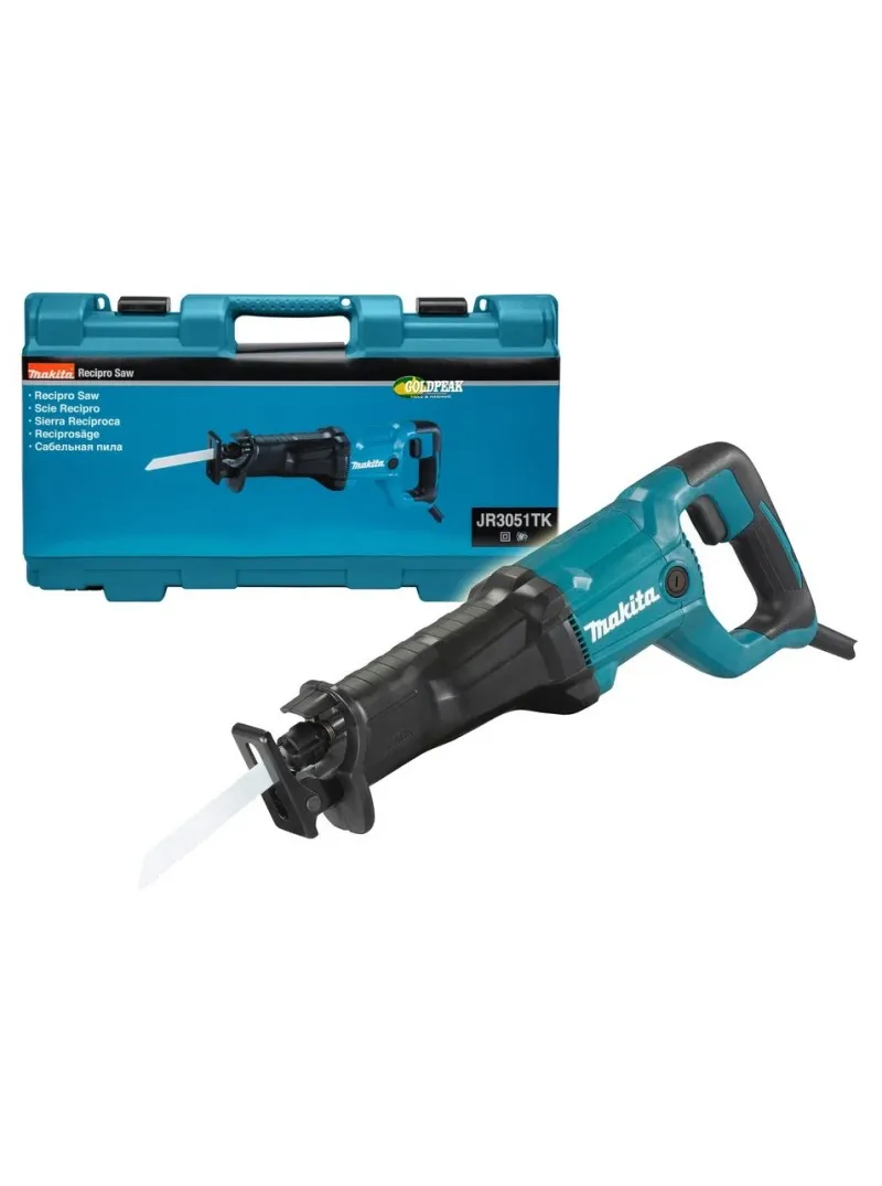 La Sierra Sable 1-3/16" 1200W Makita JR3051TK ofrece alto rendimiento en cortes exigentes, incorporando motor de 1200 W, cambio de cuchilla sin herramientas para mayor rapidez, empuñadura Soft Grip que mejora el agarre y un equilibrio optimizado de la máquina que reduce el esfuerzo del operador, garantizando máxima eficiencia, control y comodidad en trabajos profesionales.