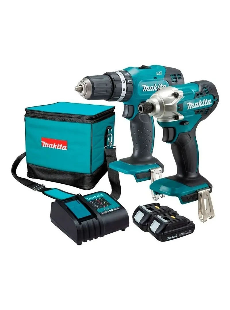 El combo de Taladro Percutor DHP453 + Destornillador DTD156 + 2 Baterías Makita 18V 1.5Ah incluye todo lo que necesitas para trabajos de perforación y atornillado. El taladro percutor DHP453 ofrece gran capacidad de trabajo gracias a sus engranajes metálicos, 16 posiciones de par más una directa, y modo percusión, mientras que el destornillador de impacto DTD156 es ligero y compacto, con inserción hexagonal de 1/4", un par máximo de 155 Nm y luz LED integrada para mayor visibilidad. Ambos cuentan con un diseño ergonómico con mango antideslizante que brinda control y comodidad, y el combo incluye 2 baterías BL1815N de 1.5 Ah para una autonomía extendida y productividad continua en cualquier obra o taller.